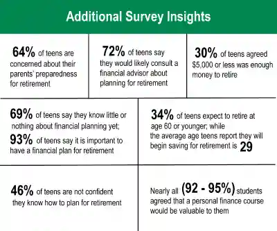 A new survey by Junior Achievement USA and AIG finds that nearly two-thirds (64 percent) of teens are concerned about their parents' preparedness for retirement while demonstrating a lack of education about their own. Sixty-nine percent of young adults ages 13-18 say they know little or nothing about financial...